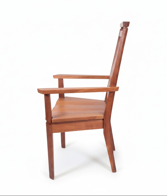 The Susan Arm Chair is a timeless, handcrafted piece designed for both comfort and presence. Built from solid cherry, this chair highlights the natural warmth and character of the wood, with graceful lines and a supportive, sculpted back.